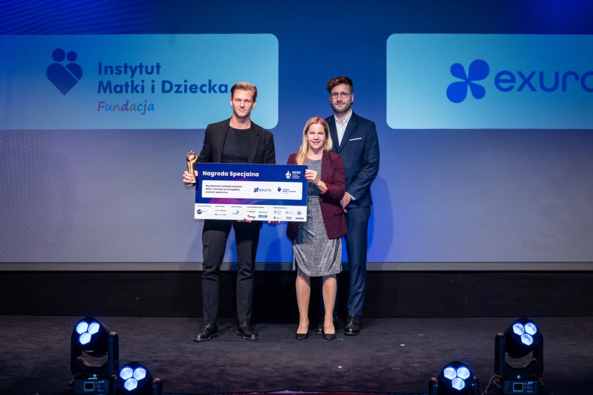 Dr hab. n. med. i o zdr. Dorota Kleszczewska, Prezes Fundacja Instytutu Matki i Dziecka, która jako partner projektu aktywnie wspiera inicjatywę MCSC, miała przyjemność wręczyć nagrodę w kategorii „Największa wartość społeczna”. Wyróżnienie otrzymał zespół Exura – autorzy innowacyjnego systemu do monitorowania pacjentów z chorobami przewlekłymi, zaprojektowanego z myślą o skuteczniejszym wsparciu opieki domowej oraz lepszym zarządzaniu zaleceniami medycznymi, zarówno przed wizytą, jak i po opuszczeniu placówki ochrony zdrowia.