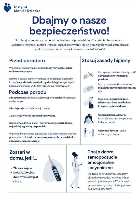 6 czerwca zostały przywrócone porody rodzinne. Krótkie, acz intensywne doświadczenia od tego momentu, zmusiły nas do przypomnienia zasad panujących w Instytucie Matki i Dziecka. Zamieszczamy je poniżej. Prosimy o wyrozumiałość.